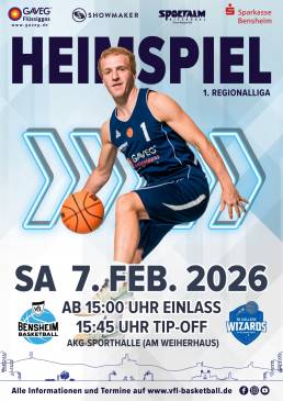 Am Samstag, den 07.02.2026, steigt in der Weiherhaus-Halle das nächste Heimspiel unserer 1. Mannschaft! 💪🏀